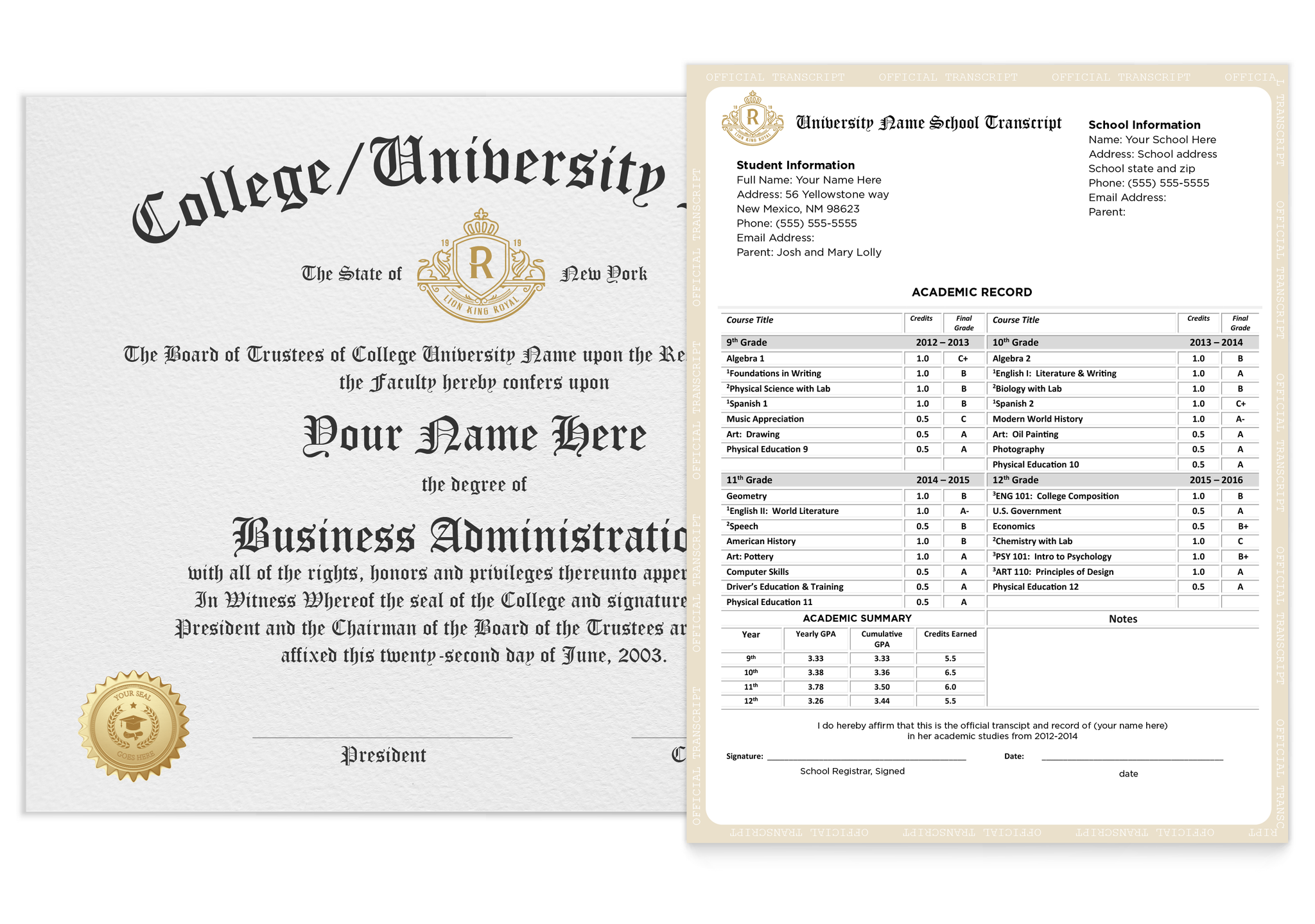 Get a professionally designed college diploma-style certificate paired with a matching transcript-style document — personalized with your details and ready to impress. Ideal for display, gifts, or creative use.